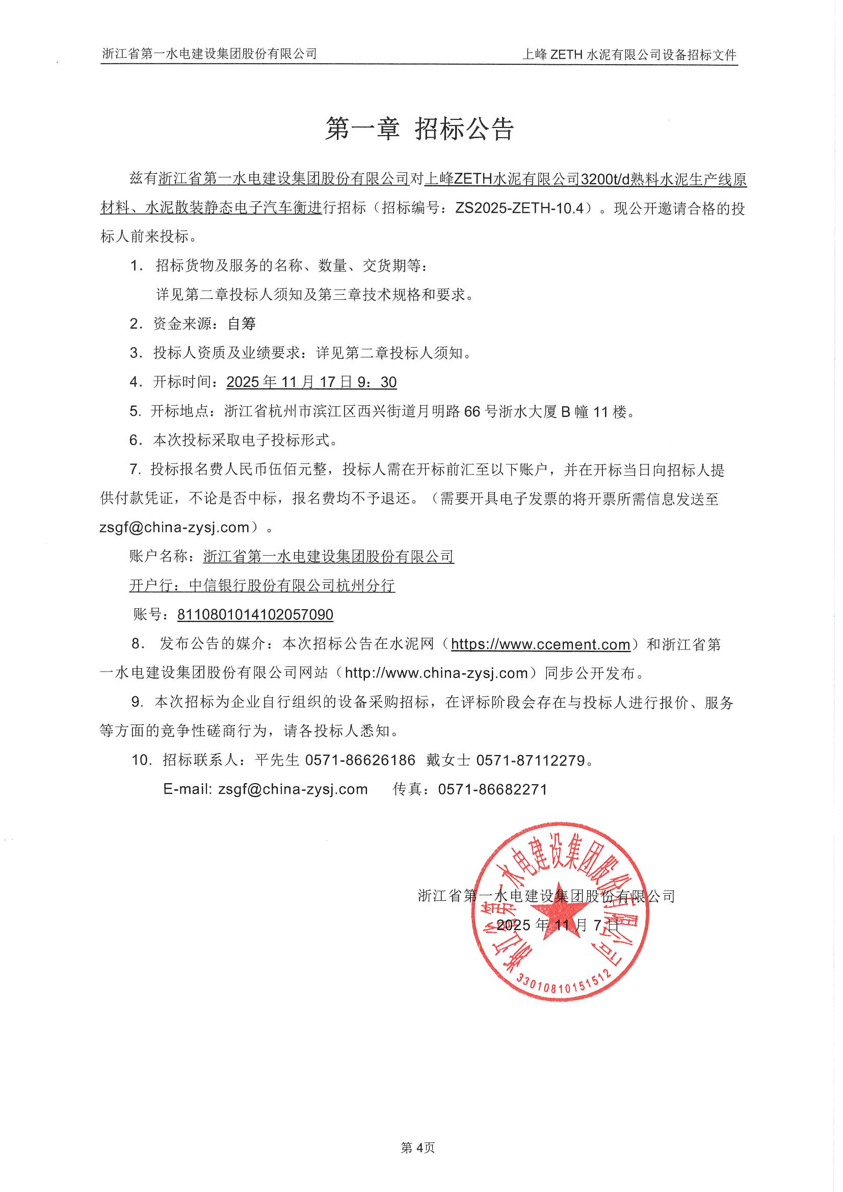上峰ZETH水泥有限公司3200t/d熟料水泥生產線原材料、水泥散裝靜態(tài)電子汽車衡招標公告